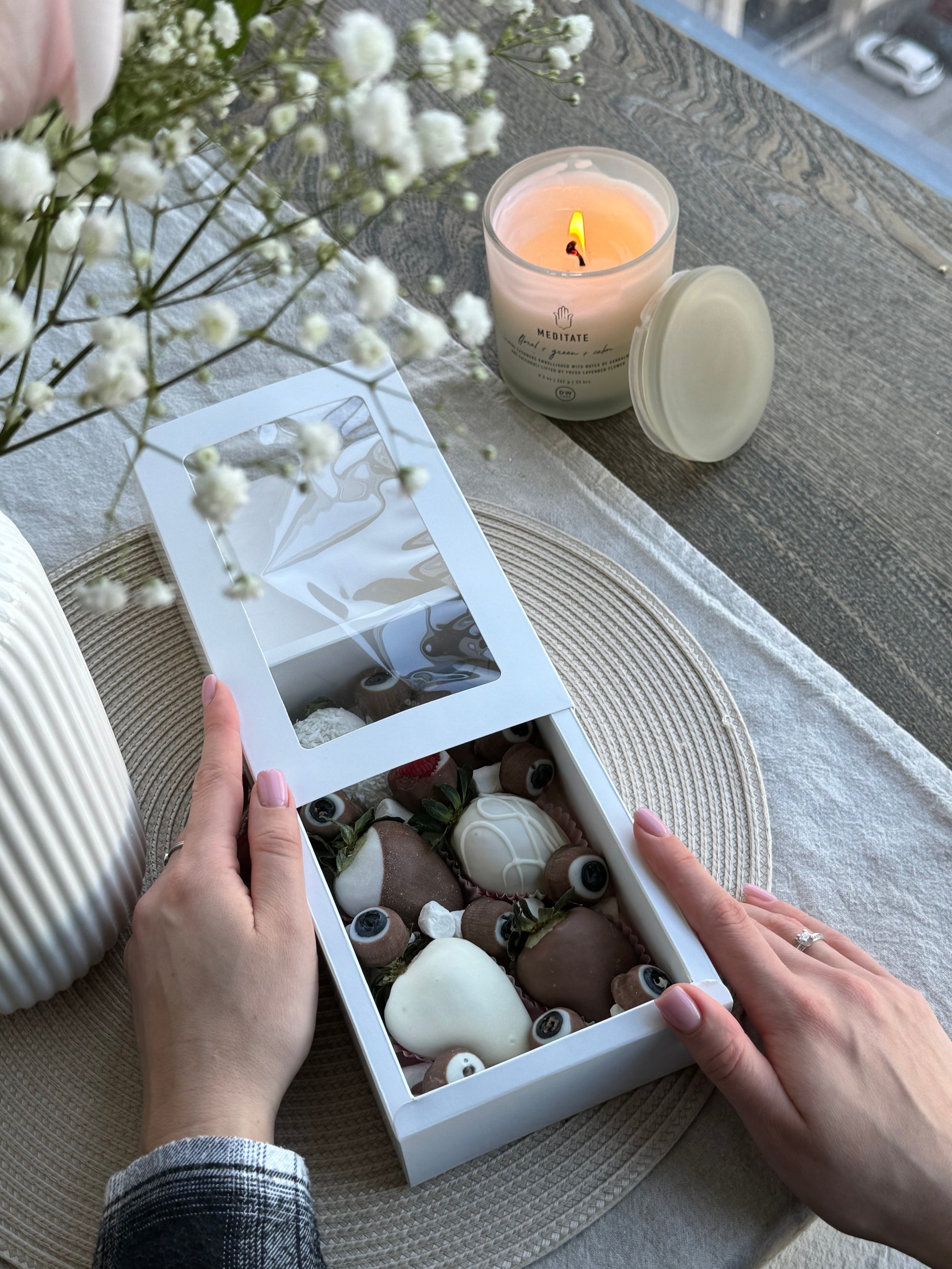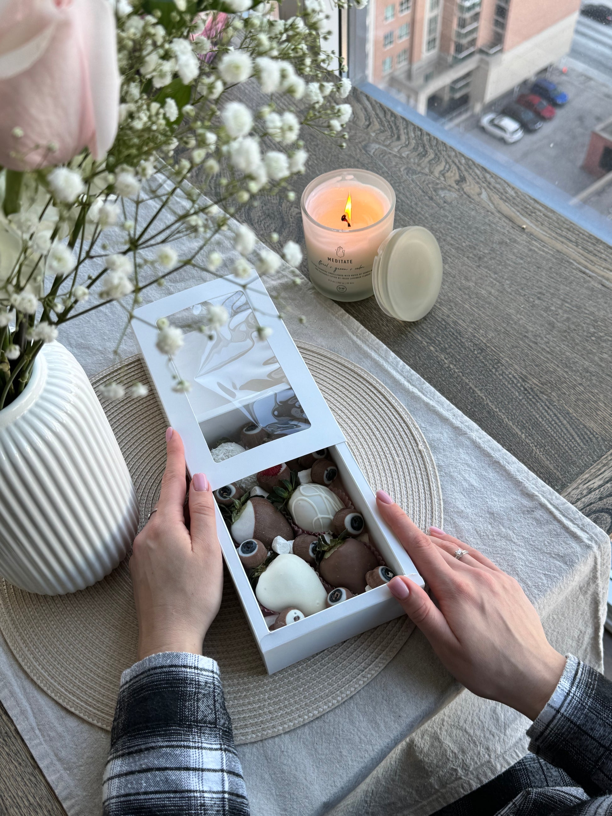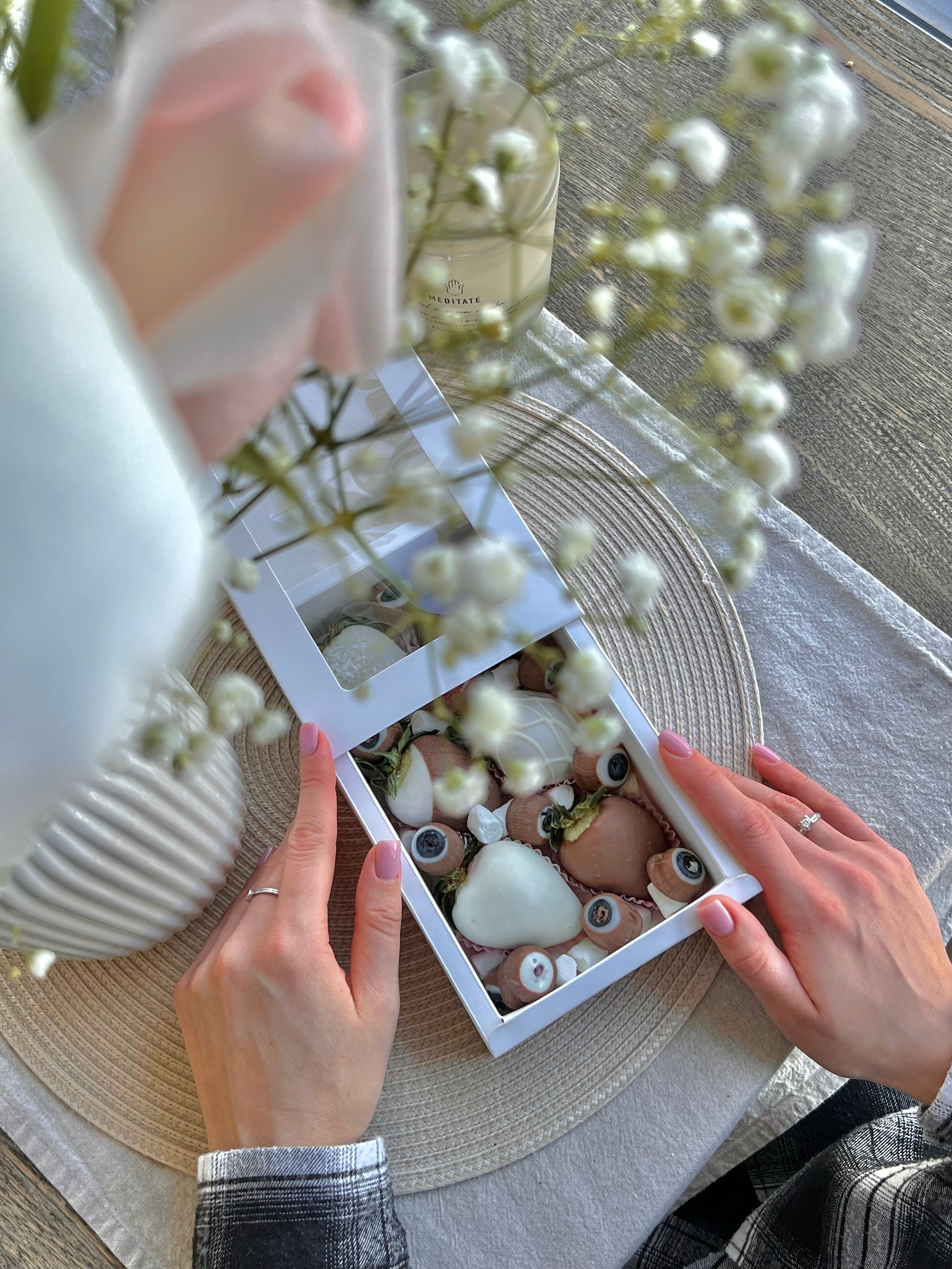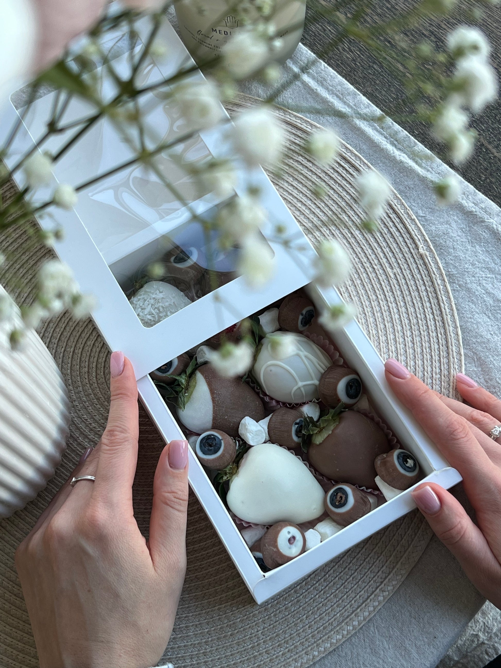 Indulge in 6 juicy strawberries dipped in rich milk and white Belgian chocolate. This set also includes a mix of blueberries, blackberries, or raspberries, all delicately coated in chocolate for the perfect sweet treat. Ideal for gifting or treating yourself!